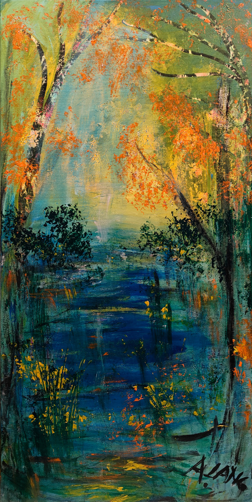 Lang’s artistic practice is centered on emotional expression and the energetic language of color. She views color as a form of energy, where each hue carries its own frequency and emotional tone. Her fascination lies in contrasts—light versus dark, complementary color pairings such as yellow and purple, or green and red. Through a careful balance of color dominance and subtle variation, she creates visual harmonies that evoke calm and introspection.
