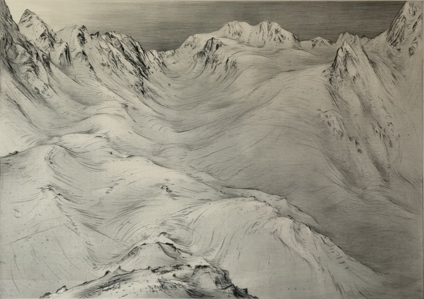 Konrad Henker, born in Weimar, Germany, in 1979, is an artist whose work focuses intensively on mountain landscapes and the connection between nature, history, and culture. Through his travels to various mountain regions, including the Ötztal Alps, Rätikon, Stubai Alps, and Lofoten Islands, Henker has developed a unique perspective on the beauty and interplay of nature and human history.