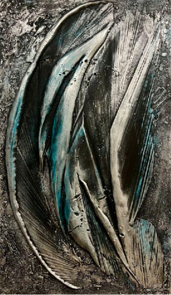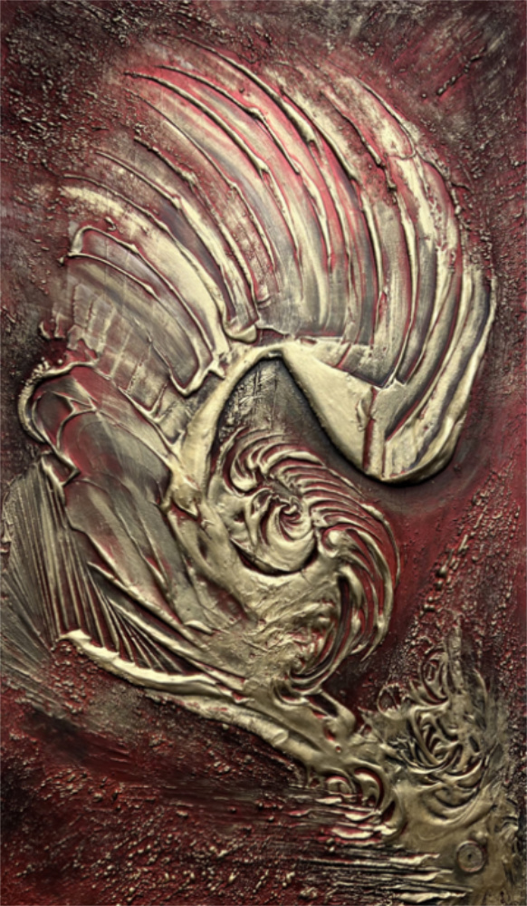 2020年,他的艺术创作面开始显现,提出了将音乐转化为抽象艺术的概念,称为**“MUSIC TRANSCENDS ART (MUTREA)”**。在创作过程中,他通过身体将节奏和声音引入作品,并用双手将其转移到木质画布上。每件作品都使用可持续材料,呈现出声音与色彩的独特融合。